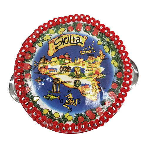 Sicilian tambourine in wood and leather depicting Sicily diameter 10cm