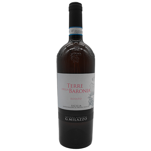 Milazzo terre della baronia rosato 75cl. Un vino dal colore rosa confetto, al palato si distingue per la sua fragranza e struttura, garantendo un ottimo equilibrio e persistenza gustativa. Ideale per accompagnare antipasti, primi e secondi piatti di pesce, verdure e carni bianche.